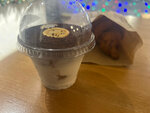 Купили чай молочный улун, недешёвый, но в чайнике один пакетик, вареники без масла, голое тесто, молочный коктейль не понравился, а эклеры свежие и вкусные.