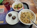 Вам на кажется, что соли много ..? - Плов с «мясом» - три микро-микро кусочка «мяса», этот плов больше подходит на пересоленный, крашенный рис с острым привкусом. - «Мясо»- это жирная гадость которую жарят в кипящем масле, не советую тем кто следит за здоровьем и его же бережёт. Гадость редкая или редкая гадость. - Оливье - достойный салат, вкусный.