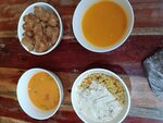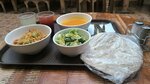 Мне повезло - все сотрудники были вежливы, отвечали на вопросы. Выгодно брать обед. Я взяла обед номер 2 за 480р плюс доп сок за 80р. В обед входил: тыквенный суп, салат, горячее (рис), лепешка, соус и имбирный напиток. Одним обедом легко могут наесться две женщины, можно разделить.