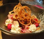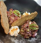 Закружилась голова после таких прекрасных блюд , мы пробовали тартар, потрясающий салат с печенью советую попробовать, стейк с хашбрауном отрыв всего, а в конце коктейль яблочный, по совету официанта Марии, для тех, кто обожает кислинку будет идеально 👍, коктейль ВАУ!! Спасибо , обязательно вернемся!