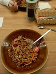 В целом неплохое заведение. Окрошка на квасу с говядиной отличная, яркий вкус. Салат греческий, много бальзамического соуса, а так неплох. Суп с лапшой отличный, детям брали взрослую порцию на двоих🔥 Морс клюквенный 🍒 вкусный Заглянем на бизнес или завтрак. Интерьер классный, только вход с наклейками еды удешевляет место🤫