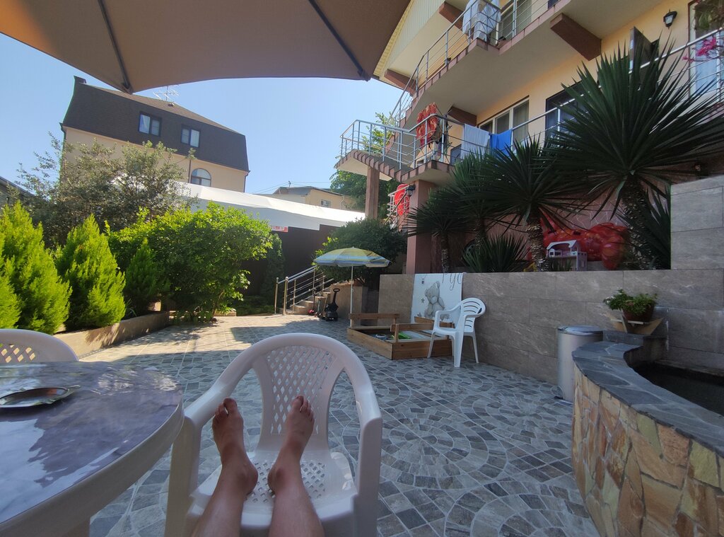 Отдыхали тут в середине августа 2025. Приезжали с Ярославля. Мне понравилось, да есть недостатки (они есть везде) в виде того, что одна розетка была чуть оплавлена, другими жильцами. Хозяйка обещала заменить, но нам хватало другой розетки. На территории чисто. В номере тоже чисто, хоть уже и не новое всё. Постельное бельё, если нужно поменяют. Мы не стали с этим заморачиваться. Можно свои вещи постирать. Посторонних шумов нет. Расположение удобное. Жалко только, что как и везде нет отдельного места для курящих. Мы как не курящие плохо переносим сигаретный дым, но так везде. А так в целом всё отлично. Понравилось то что в номере были одноразовые тапочки - очень выручили. Есть вай фай. Хорошая просторная беседка и есть мангал. Хозяйка очень приветливая, сразу видно хороший человек. От моря и ЖД станции наверное 5 минут спокойным шагом, при этом ЖД не слышно. Если бы стоял выбор ехать сюда или нет, выбрал бы ехать.