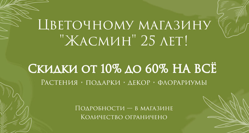 Юбилейная акция: скидки от 10% до 60% на весь ассортимент! В этом году цветочный магазин "Жасмин" отмечает важную дату — 25 лет работы, и в...