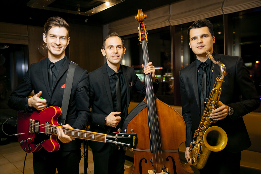 1) Музыка на весь ваш праздник - встреча гостей и Танцы 2) Состав инструментальный и с вокалом 3) Живой звук без playbacks (минусовок) 4) Стильный вид и профессиональное исполнение 5) В стоимость входит музыкальное оборудование 6) Есть ИП