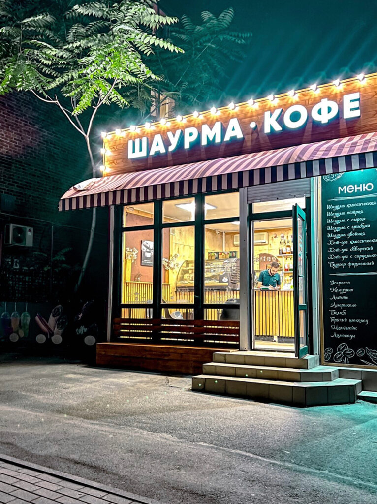 Вкусная шаурма и разнообразие кофейных напитков .