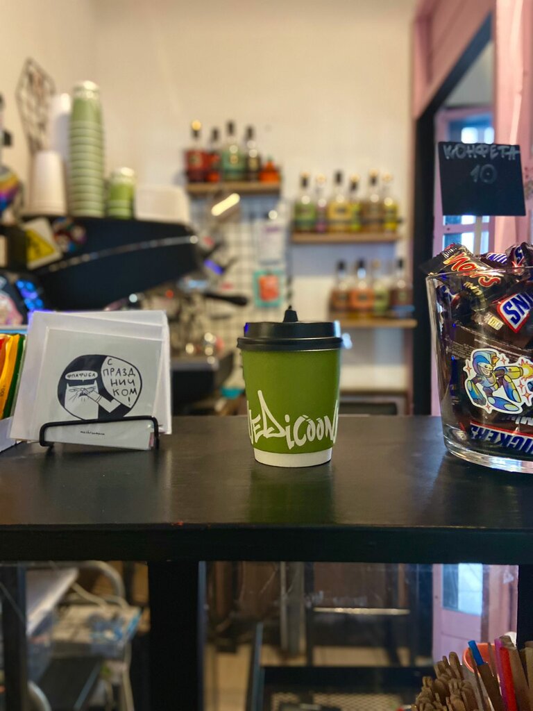 Недавно мне посчастливилось посетить кофейню "Jedi Coon", и я сразу поняла, почему она пользуется такой популярностью среди местных жителей. Уже с порога кофейня впечатляет своим оригинальным интерьером. В дизайне зала можно заметить забавные декоративные элементы, связанные с вселенной "Звёздных войн", что моментально поднимает настроение. Персонал заслуживает особой похвалы. Бариста здесь настоящие энтузиасты, увлечённые своей работой. Они вежливы, приветливы и всегда готовы помочь с выбором напитка. Особенно впечатлил Вадим. Девочки, обратите внимание, просто душка. Меню кофейни приятно радует разнообразием. Здесь можно найти и классические кофейные напитки, приготовленные на высшем уровне, и необычные авторские вариации. Спасибо создателям этого заведения! Это прост волшебное место от души рекомендую!