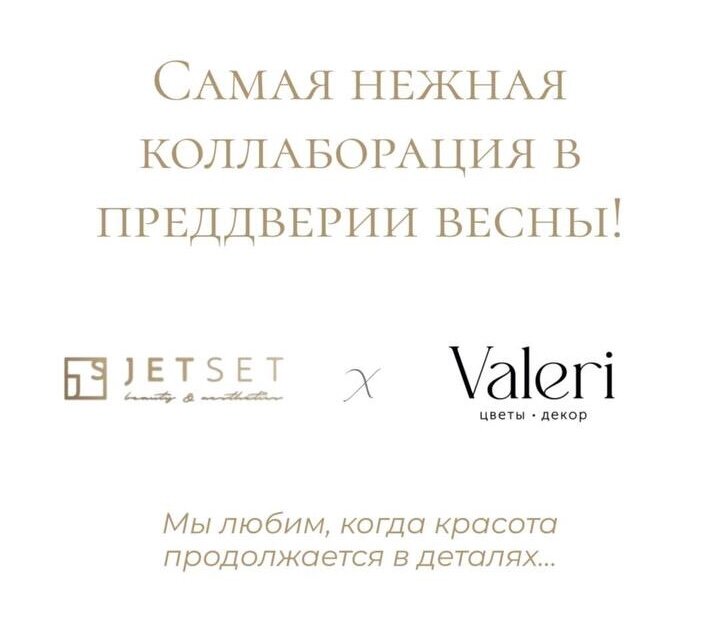 JET SET и Valeri подготовили совместное предложение для наших гостей! При покупке букета вы получаете приглашение в пространство красоты - J...