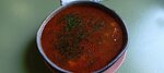 Томатный бульон с голубыми мидиями, кальмаром, осьминогом и креветками. Подается с хлебом собственного приготовления и петрушкой.