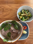 Красивый и продуманный дизайн, каждый уголок заведения буквально хотелось фотографировать! Ещё из плюсов это недорогое меню. Например ланч в виде супа и закуски обойдётся всего в 380 рублей. Но по большей части плюсы на этом заканчиваются. Фо бо был пресным, телятина жесткой, а лапша объективно не доваренной. Битые огурцы вкусные, но мне показались слишком острыми. И бабл ти «голубая матча» ощущался как молоко со льдом и всё. Выпить не вышло 😕