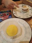 Вопрос не столь к еде, сколько к обслуживанию. Заказали кофе и круассаны. Официантка принесла ОДНУ кружку и только через 10 минут вторую и еще через минут 10 круассаны. Когда за столом сидит два человека, можно удосужиться обслуживать одновременно, и приносить еду на подносе, а не лезть руками в тарелку.