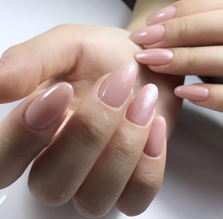 Маникюр комбинированный, выравнивание и укрепление ногтей базой, покрытие гель-лак.