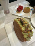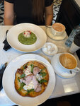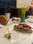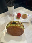 Искали новое место с десертами, случайно наткнулась в инсте на обзор, пришли спонтанно, ничего не ожидая и приятно удивились. Заказали круассан с лососем - идеальная рыбка, действительно слабосоленая, как надо, нежнейший сыр и вкуснейший круассан!!! Давно таких не встречала в городе. Настолько было вкусно, что взяли с собой на завтрак 🤤. Брускетта с пастрами — вкусный хлеб, одновременно мягкий и хрустящий, отличный соус, в меру кислый, не забивающий собой все вкусы. Сбалансированное по вкусовым качествам блюдо. Десерт Куин Аман — шикарный холодный заварной крем в теплом тесте с сахарной корочкой. А вот занг в пралине — вообще не впечатлил. Вкусовщина, но все же напишу свои впечатления: слишком много крема сверху - перебивает вкус теста, само тесто тоже будто не допеченное, пралине перебивает вкус теста и не получается идеального сочетания, одно ярче другого, что забивает и не дает насладиться комплексом 😁 само пралине внутри занга невероятно вкусное, но все вместе — не моё. Были в пятницу вечером — было мало народу, это приятно. Но полагаю, что на выходных тут овербукд все. Место однозначно рекомендую. Вернемся снова. ЗЫ: единственный минус, маленький, но всё же — в чай алоэ-красный апельсин добавили подгнивший листок мяты, я такое не люблю. Надеюсь что такого не повторится ❤️