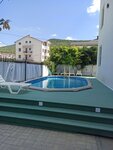 Отдыхали в августе с друзьями и детьми. Полный восторг!!! Двое детей по 8 лет целыми днями играли во дворе, кажется им на территории было лучше, чем на море. Есть бассейн, не глубокий, дети плескались безвылазно, есть батут, для малышей разные игрушки. У бассейна шезлонги, можно позагорать и охладиться. Вечером для детей показывают мультики по большому экрану прямо во дворе. Нас взрослых было четверо. Вечером жарили шашлыки на мангале, и отдыхали от насыщенного дня во дворе за столиком. Возле номера так же есть столик и два кресла, это для тех, кто хочет посидеть с бокальчиком в тишине. Так же можно заказать завтрак и обед, мы не заказывали, но сидели, что завтраки и обеды очень даже приличные. Очень много отдыхающих с детьми, так что им было не скучно. Номера вполне себе приличные, у нас был 4-х местный, в номере две большие двух спальные кровати, одна для двоих детей, другая для двух взрослых. Так де есть в номере холодильник и кондиционер, и конечно душ и туалет. Однозначно, рекомендую, если когда-нибудь поеду в Сукко, то хотелось бы попасть сюда.