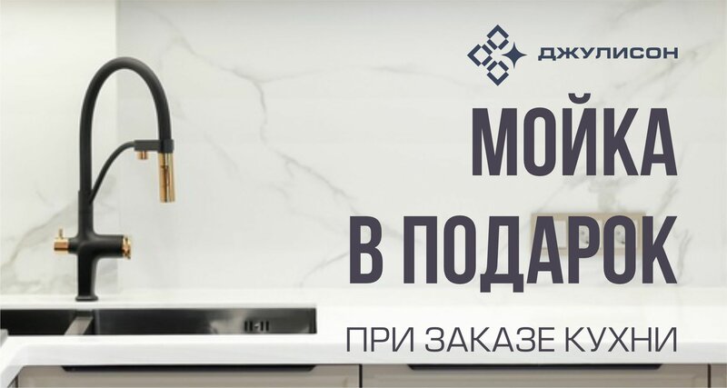 В период с 12 по 31 января 2026 года при заказе кухни на сумму от 350 000 руб. в салоне «Джулисон», получите в подарок мойку, указанную в ди...