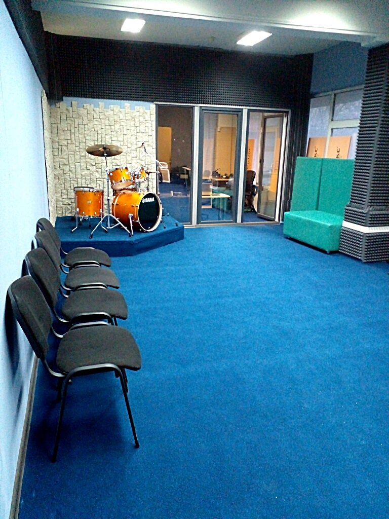 В студии есть окна кондиционер и приятную атмосферу дополняет шикарная установка ямаха с прекрасным железом,аппараты качественно подзвучены фирмовыми микрофонами,что даёт дополнительный объём и всё это регулируется профессионалами своего дела.Приятно,что всегда находится место для преподавателей,отдельное спасибо Елене и Сергею,ребята Вы лучшие!