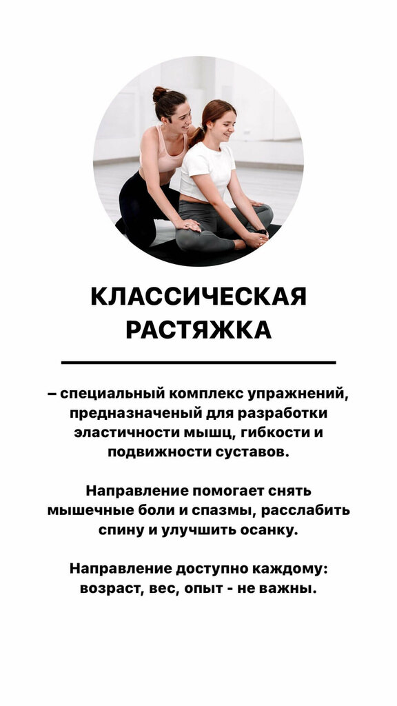 Классическая растяжка — это целый комплекс специальных упражнений и методов, направленных на совершенствование гибкости, развития качественной подвижности в суставах и эластичности мышц, которые полезны и необходимы, независимо от возраста и степе...