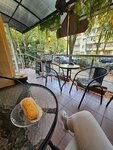 Вот знаете, удивительно как можно сделать маленькую кофейню приятной и удобной для всех. Кофе вкусный, есть вареный, есть без кофеина. Есть какао и шоколад. Есть альтернативное молоко. Привозят вкусные и свежие пирожные. Даже постные и для веганов. Есть полезный шоколад. Есть самосы, большие и обалденно вкусные и сытные. Внутри уютно, снаружи пальмы и зелень. Девочки всегда приветливые.