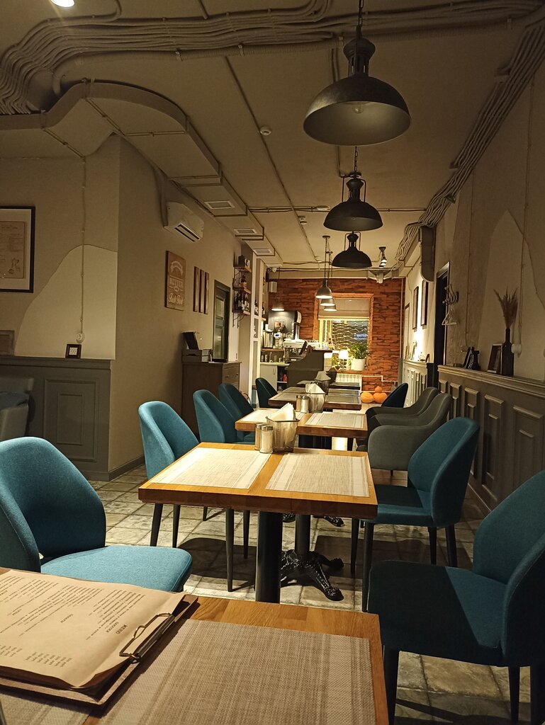 Были здесь в выходной день. Интерьер красивый, приятный. Блюда вкусные, порции нормальные. Но один минус, это отсутствие понятия у официантки порядка подачи блюд. Заказали сразу горячее, кофе и десерты. В итоге нам сначала принесли кофе, потом горячее, потом десерты. Вот какой официант будет выносить блюда в таком порядке? Часть блюд не доели, попросили положить с собой, так в итоге оказывается и контейнеры платные. Цены достаточно высокие, уж могли бы позаботиться о бесплатных контейнерах для посетителей.