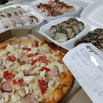 Заказали на ужин суши, пиццу и ребёнку картофель фри. Было всё очень вкусно. Ещё и приятный бонус в подарок 🎁 получили 3 маленьких сета. Вечером просто объелись. Доставка быстрая что очень порадовало. 🥰🤗🥰
