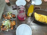 The food is very tasty! We took a rack of lamb, lamb flesh, potatoes with bacon on skewers, salmon fillet, a bottle of red semi-dry Akhtyn wine, sliced vegetables and two sauces. Everyone took portions except vegetables, they are in two. I remember a bottle of wine costs 300 rubles. Like in a store. We took everything with us because there was a full house, we didn't break off and went to the beach to eat it all! Everything was delicious. By the way, we gave 3,000 rubles for this! So I'm writing and thinking why - I'll come and eat with them more than once, and they already have a full house))) but I was confused by their small rating and I want to help the guys somehow! Although they are already known