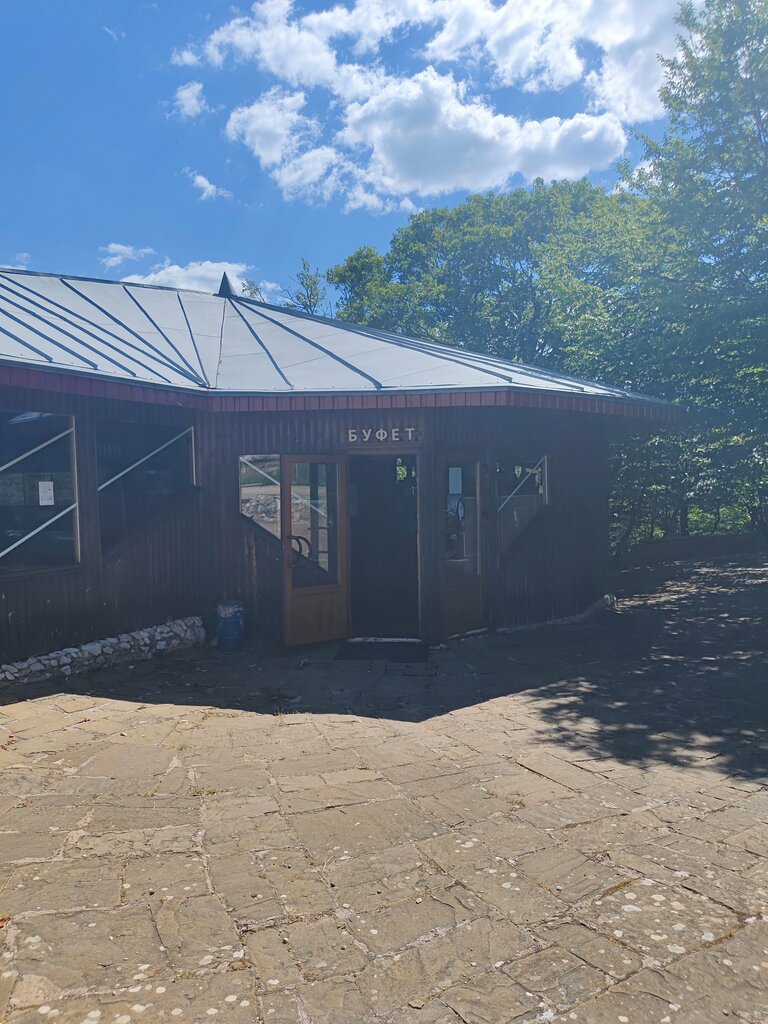 В этом кафе при входе в Мраморную пещеру можно купить напитки, сосиски в тесте, печенье, шоколадки. Места достаточно. Одноразовая посуда за дополнительные деньги. Обслуживают быстро. Есть умывальник, туалет отсутствует.