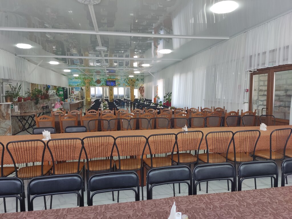 Больше вместительное кафе, можно проводить различные мероприятия, неплохая кухня, парковка!