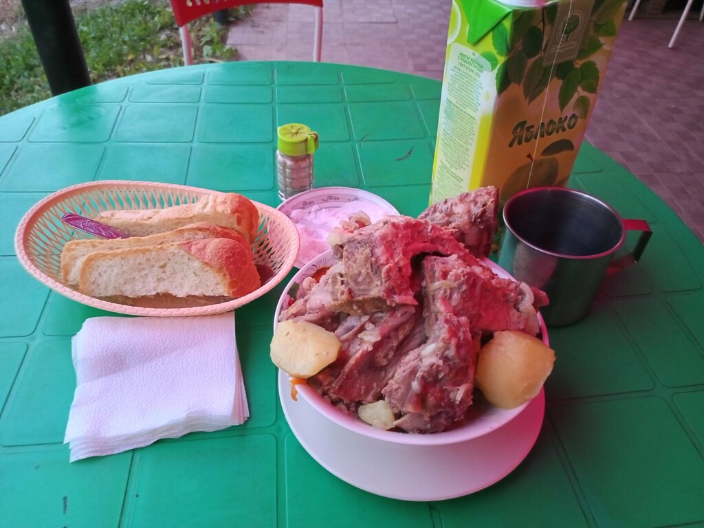 Отвратительное кафе... Антисанитарных полная.. Мясо валяется на полу в карабинах и рухнет от жары в "кафе", обслуживание такое же, цены высокие -но они нормальные для блюд с соответствующим качеством а не тухлые ребра под названием "Жаркое".Ах да сок это мой был так как в продаже был только чай либо кофе🤮🤮🤮