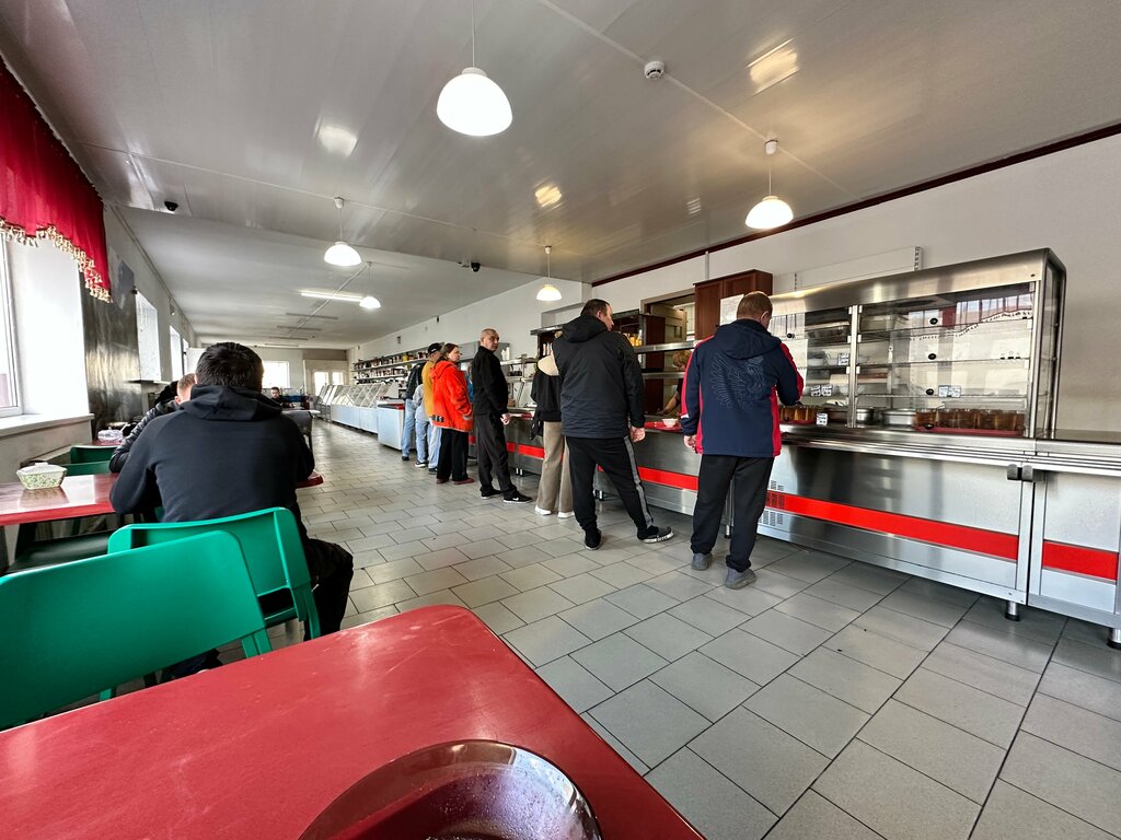 Для дорожной столовой отличный выбор и сервис. Несколько блюд на выбор, есть халяль. Сытно. Чисто. Два туалета: м и ж. Раковины. Есть даже массажное кресло. Ценник: 500 р на человека —первое, второе, компот и сладкое.