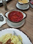 Девочки в кафе очень приветливые, а оленина в горшочке просто волшебная! Грибной суп тоже осень вкусный. Есть также выбор из комплексных обедов. 5 из 5