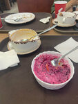 Девушки приветливые, но с едой что-то не сложилось: котлета адски солёная, рис пресный без подливки, творог в блинчиках ненастоящий. Половины меню не было. Но кофе вполне хорош!