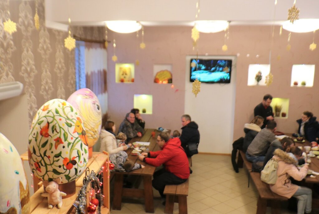 Плюсы: здесь можно перекусить, попить чай. Есть оплата картой. Антуражно. Минусы: неудобная лестница на 2 этаж, узкая, крутой подъём, уже на самом верху левый держатель расшатался, рукой не опереться. В праздничные дни - народу много, сесть негде.