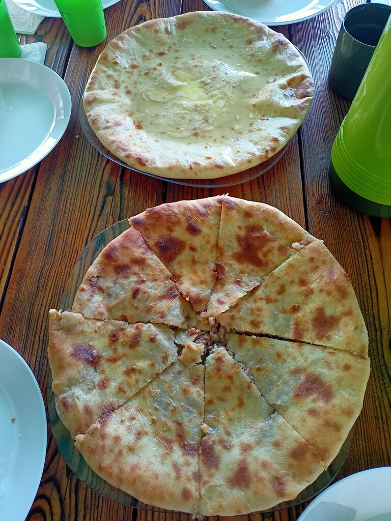 Вкусные осетинские пироги (мясной мне показался островат, зато с сыром был просто суперский), симпатичный двор в котором стоят столики в тени. Это не кафе в полном понимании этого слова. Кафе во дворе, хозяйку искать в магазинчике.