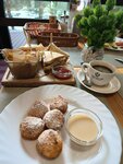 Приехали в заведение пообедать. Машину можно удобно оставить на парковке рядом. Внутри чисто, много свободного пространства, красивый интерьер, играет тихая музыка. Меню достаточно большое, ценам приятно удивились. Были примерно в час дня, но можно было заказать завтрак, что приятно. Попробовали английский завтрак, куриный суп, бургер и творожники, сок и травяной чай. Всё вкусно, по-домашнему. Порции хорошие, доесть всё не удалось. Ребята, которые нас обслуживали, внимательные и вежливые. Вид из окна — непередаваемая красота. Остались довольны!