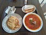 100/10! Начиная с приветливой женщины, что нас обслужила, заканчивая чистотой. Зал большой, ассортимент блюд достаточный. Порции огромные, ценник бюджетный. Но, самое главное, вкусно!!! Отличное место! Мы не ожидали таких размеров блюд, пришлось забирать с собой. Нам любезно предоставили контейнеры. Суп лапша как дома, там еще целая куриная ножка. Борщ, мясо под шубой (типа по-французски), запеканка, выпечка-вме свежее, оч вкусное. Желаем вам процветания!