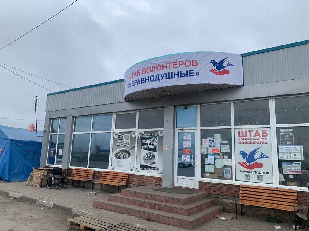 Бывшее кафе, уже год используется как штаб волонтеров. Единственное место на кпп, где можно получить еду, помощь и поддержку.