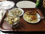 Из плюсов - хорошие кресла, металические приборы, фарфоровая посуда Из минусов - очень странное меню, борщ из кислой квашеной капусты с кусками вчерашней курицы, салат из свежих овощей с самой дешевой копченой колбасой Неправильное расположение зоны обслуживания клиента: микроволновые печи прямо возле кассы, кофемашина и чайник там же, все толкаются у кассы Не убирают со стола, мне не сложно убрать поднос и посуду, но стол, как следствие, тоже не протирают Цена + - обычная, за обед на фото 530р