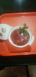 Порции средние, не знаю кто пишет что огромные. Никакого сала к борщу нет, хлеба тоже нет, только лепешка за 50 р и лимон в чай 20 р, чай с лимоном 65 рублей выходит, дорого и не оправдано. Взял пирог с мясом, 150 шрам 140 рублей, по цене шашлыка 😂нормально покушать выйдет на рублей 800-1000