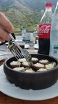 Fast service, despite a lot of work, very tasty food (we ate mushrooms with cheese and khachapuri on skewers), and, of course, a view of the mountains, the river and the cave city😍