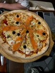 Еда просто замечательное. Соотношение цены и качества превосходное. Жалко, что узнали об этом ресторане не сразу, а так бы ходили только туда. Пицца определено стоит своих денег. Вы нигде не найдёте столько сёмги в пицце за 400 руб. Обслуживание достаточно быстрое, но когда почти полная посадка ресторан не справляется. Очень советую туда идти не пожалеете. Кстати там есть приятный бонус за 200 руб можно заказать литр вкусного компота