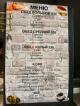 Готовят два молодых парня. Открылись не давно, меню пока на стадии формирования, но и сейчас есть выбор. Супы, второе, гарниры. Особенно порадовал "ВОК". Два по цене двух. Порции большие. Вкусная выпечка и кофе. Цены вполне доступные. Можно взять комплекс.