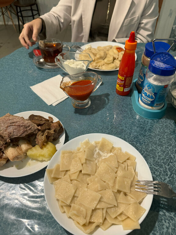 Останавливались с ночлегом. Гостиница конечно могла быть и лучше, но нужно было срочно где-то остановится. Дети устали. Зато полностью компенсировали минусы кафе. Заказали пельмени. Вкуснее я ещё ничего не ела. Мужчины мои наелись до сыта. Порции большие.
