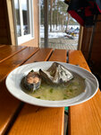 Домик на берегу озера, где можно круглогодично поесть ухи из свежей форели. Берем кастрюлю ухи, а часть рыбы просим пожарить и берем с собой. Очень вкусно! Готовят быстро. Жаль только, что нет кофе) Но есть баня). Летом Вейк - можно покататься.