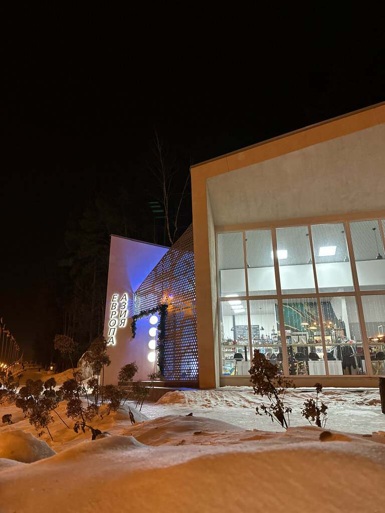 Никогда бы не подумала, что приеду в это место при таких обстоятельствах) По дороге в Первоуральск очень захотелось в туалет, но выходить в холод не хотелось совсем и вдруг мы увидели украшенное гирляндами здание, рядом с ним 3 качели и место для загадывания желаний, стилизованное под дерево, и решили остановиться. Место оказалось просторным магазином сувениров уральских мастеров Европа-Азия. Менеджер оказался настолько любезен, что не просто пустил нас в уборную, но и провел экскурсию по экспозиции магазина. Я, как фанат спичек, взяла футляр для коробка со змейкой, вырезанный из дерева, муж выбрал себе шарик гематита. Большая коллекция украшений из минералов и драгоценных камней, дерева и кожи, тарелок, игрушек и футболок на Уральскую тематику. Здесь также можно взять себе кофе, чай и воду. Благодарим еще раз за гостеприимство и желаем процветания!