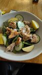Хорошее кафе, неплохие бизнесы. Много народу, вероятно пользуются популярностью Но кальмар прям плавает в майонезе. Чуть уменьшить его количество и будет супер.