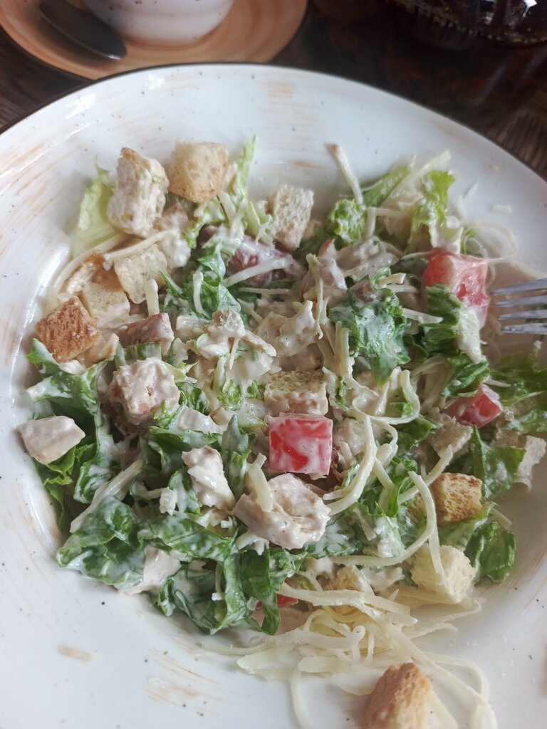 Проездом тут. Заказал цезарь с курицей... . Жаль что это ни цезарь с курицей ☹️ обслуживания норм. Спасибо