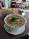 Готовят очень вкусно и с душой! Заказывали шурпу из баранины.Порции просто огромные с щедрыми кусками мяса, мы съели всё до донышка,остановиться было не возможно) Персонал приветливый, приготовили всё шустро. Отдельная благодарность от наших желудков, после обеда здесь они весь день были наполнены блаженством разливающимся по всему организму)