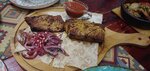 Пришли в кафе , заказали . Вино п/сл ,шашлык , салат , кутаб и хачапури. В итоге принесли мне вино сухое , шашлык это 4 сальных куска не много красного лука и все это на лаваше за 490 рублей , да и там ещё был соус который мы не заказывали , но подумали, что этого как комплимент к мясу в итоге он отдельно посчитал его , кутаб если я не ошибаюсь всегда должен быть с большим количеством зелени , а когда ее нет , это просто пирожок с грибами и луком и последние это хачапури , фаворит грузинской кухни , блюдо которое умеет делать каждый грузин. Оказалось не то тесто , тесто которое идёт как на обычный хлеб , вкуса не было вообще, как и соли