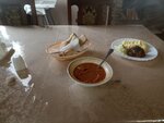 Заезжал 22.10.25, кафе пустое никого нет, заказал солянку 300 р пюре с гуляшем и 4 кусочка хлеба вышло 635 руб, что солянка что гуляш явно не первой свежести, ехал ещё до вечера изжога мучала. Дорого и еда не очень, наверное что проходимости нет и разогревают еду которая не известно когда приготовлена. Хлеб свежий и вкусный кстати. Порции маленькие. Кстати аккуратно с перцем и солью там баночки проспаются донья. Также не предупредили что оплата наличными или переводом, там нет интернета мобильного