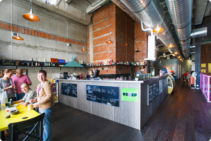 Выбор кофе - ошеломляющий. Попасть в кафе - через запись на экскурсию в студию Лебедева (нужно планировать заранее). Если подойти к открытию в 10:00 - будет волшебная тишина. Студия реально начинает медленно просыпаться и гудит ближе к полудню. До полудня - будете в тишине.