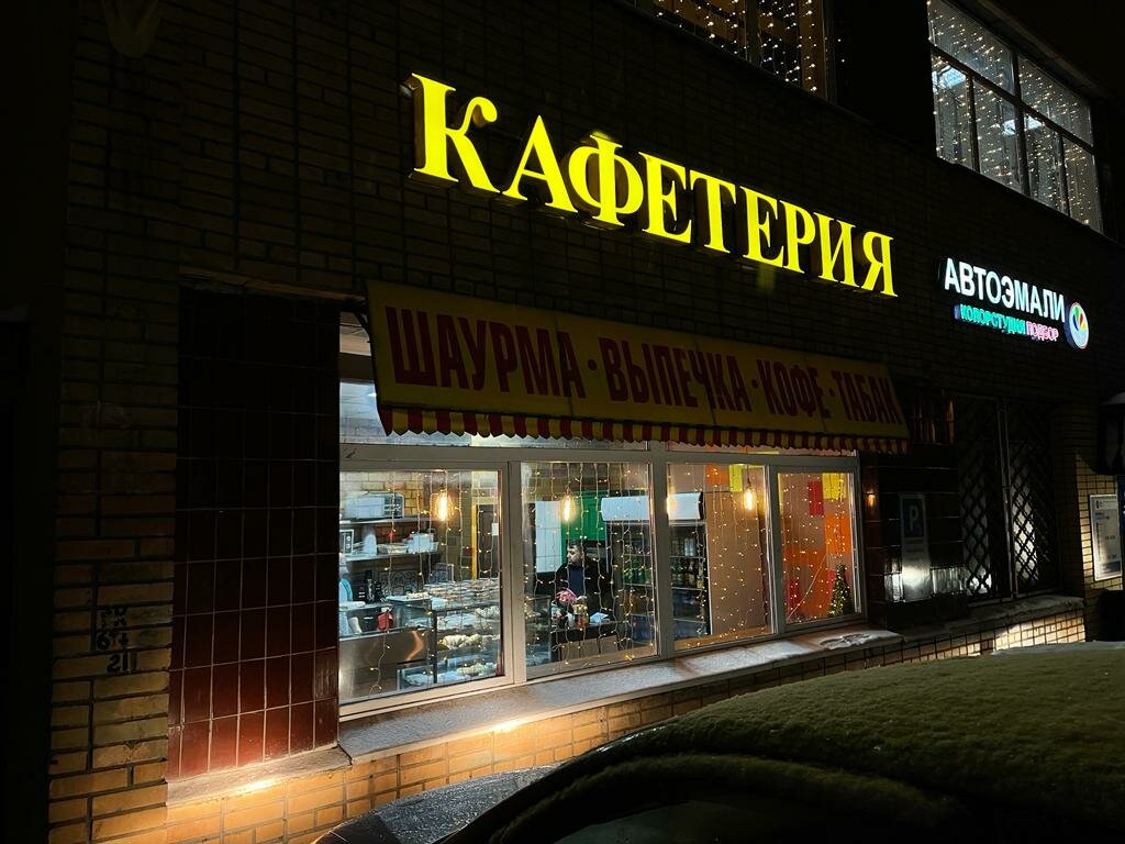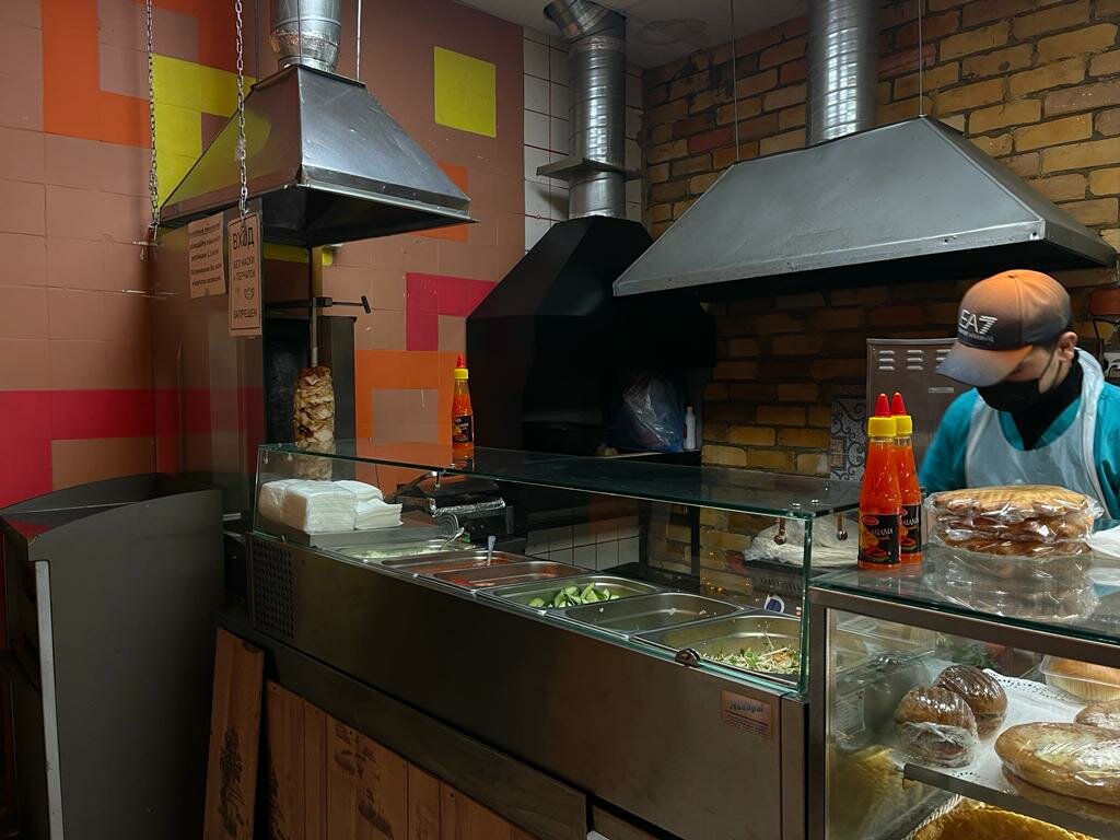 Проезжал мимо, зашел перекусить в это место. Взял шаурму и чай. Шаурма вкусная, ингридиенты свежие, хорошо сочетаются между собой, есть как обычный вариант, так и острый(халапенью добавят если нужно). В кафетерии есть также выпечка(самса, лепешки, тортики, пирожки и прочее), первые и вторые блюда(в контейнерах), которые можно взять с собой. Если есть желание можно поесть внутри, есть немного места для этого у окна. В общем и целом весьма не плохо. Спасибо!
